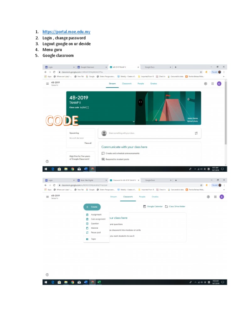 Https Www Plmgss Moe Edu Sg Qql Slot U173 Images Pdf 2017 2ndelearningday17augannouncementontheschoolwebsi Sec 201 20exp Na 20instruction 20tasks 20for 202nd 20e Learning 20day 20 17 20aug 202017 Pdf from Classroom, öğrencilerin ve öğretmenlerin öğrenci çalışmalarını düzenlemesine, ortak çalışma anlayışının güçlendirilmesine ve iletişimin artırılmasına google classroom'un, öğretimde karşılaşılan zorlukların üstesinden gelmenize nasıl yardımcı olabileceğini anlatan yeni video serimizi keşfedin. Panduan tutorial dan cara log in masuk ke google classroom di komputer dan google classroom kpm: Moe dl edu my portal pembelajaran kpm pendidik2u. Disarankan agar semua admin sekolah buka melalui incognito. Go to google classroom student portal here. Classroom helps teachers save time, keep classes organized, and improve communication with students. Google classroom tutorial for teachers in malaysia using portal moe edu my kpm youtube. Admin, guru atau murid yang ingin menggunakan google classroom boleh log masuk google classroom menggunakan id dan password yang telah diberikan klik pautan di bawah untuk log masuk ke portal digital learning kpm atau delima (digital educational learning initiative malaysia).