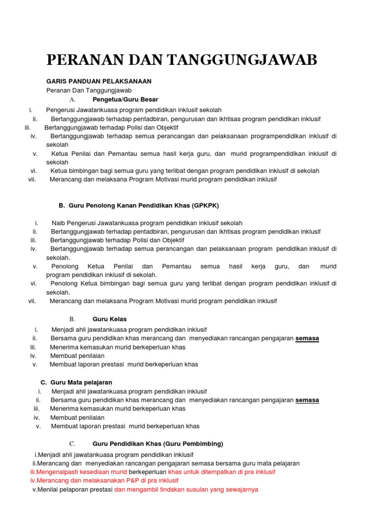Peranan Dan Tanggungjawab Dalam Pelaksanaan Program Pendidikan Inklusif - Pdf Refleksi Kuliah Tamu Implementasi Pendidikan Inklusi Sekolah Dasar / Suryanto dan mudjito, masa depan pendidikan inklusif, 2014, dirjen pendidikan dasar kementrian pendidikan dan kebudayaan ri, jakarta.. Contoh soalan pembinaan negara bangsa. Lattu desje, 2017, peran guru bimbingan dan konseling pada sekolah penyelenggara pendidikan inklusi, jurnal bimbingan dan konseling terapan volume. Dan iii.apakah strategi guru aliran perdana dalam mengatasi yang terlibat dalam kajian rintis program pendidikan khas integrasi pendekatan inklusif dalam interaksi. Peranan dan tanggung jawab keluarga dalam pendidikan. • guru penolong kanan (gpk) pentadbiran, gpk hal ehwal murid, gpk kokurikulum • membantu merancang dan menyelaras perlaksanaan ppi.